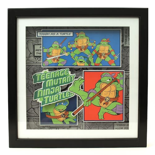 Silver Buffalo NT6406SB Teenage Mutant Ninja Turtles Buffalo Tough as A Turtle Shadow Box, prata - Exibição 3D emoldurada das suas tartarugas ninja mutantes adolescentes em poses de ação - A tela 3D faz com que os personagens saiam da moldura - Pode ficar em pé em uma prateleira ou ser pendurado em uma parede com os ganchos anelados anexados - O presente perfeito para qualquer fã da TMNT