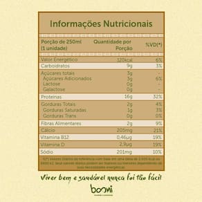 Ingredientes: água, proteína isolada de ervilha, concentrado de aveia, cacau em pó, fosfato tricálcico, vitamina d2 ergocalciferol , vitamina b12 cianocobalamina , edulcorante glicosídeo de esteviol, estabilizante goma gelana e goma guar e aroma natural. Não contém glúten.