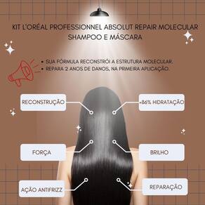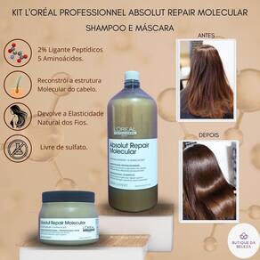 Transforme a saúde dos seus cabelos com o shampoo e máscara loréal professionnel absolut repair molecular e experimente uma reparação profunda que devolve vida e beleza aos seus fios.