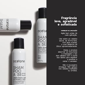 O Shampoo a Seco Océane mantém os fios com a aparência sempre limpa, sem oleosidade e sem aquele ar pesado. É um up no visual nos dias mais intensos, quando não há tempo de tirar aquele momento de lavar os cabelos com o Shampoo tradicional.