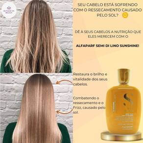Para um tratamento completo, combine o sunshine semi di lino com a máscara capilar reparadora pós sol, óleo protetor com filtro uv e o leave-in reparador.