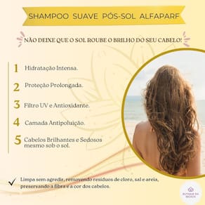 Com os cabelos e couro cabeludo molhados, aplique uma quantidade adequada do shampoo pós sol alfaparf .