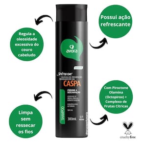 A caspa é desencadeada por uma descamação provocada pelo fungo pityrosporum ovale, que pode estar presente no couro cabeludo, saudável ou não. O Shampoo Avora Sistema Auxiliar de Prevenção e Tratamento da Caspa foi formulado com a associação de substâncias extraídas de frutas cítricas, que higienizam e regulam a oleosidade excessiva do couro cabeludo, prevenindo assim a caspa. Ele deixa os cabelos limpos e protegidos, sem ressecá-los, além de ter ação refrescante.