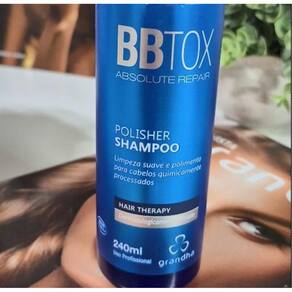 Shampoo BBtox Polisher Reparador de Danos 240ml NOVA FÓRMULA O Polisher Shampoo é ideal para reparar danos causados pelas progressivas, mas também tratar cabelos alisados ou relaxados com ativos legalizados em geral. O kit BBtox Absolute Repair é um poderoso repositor de massa para cabelos fragilizados. Rico em polifenóis de frutas vermelhas, o tratamento BBtox Absolute Repair tem ação altamente antioxidante, hidratando e preenchendo as imperfeições das cutículas. Tratamento capilar de ação restauradora e recuperadora da estrutura capilar que combate os danos causados por procedimentos de escovas progressivas, reequilibrando o pH dos cabelos e recondicionando a estrutura capilar à manutenção do efeito liso intenso. Potencializando pela ação integrada do ácido hialurônico com variados componentes reconstrutores e polissacarídeos de tamarindo, enorme fonte de polifenóis e rico em fósforo, cálcio e vitaminas A, B e C. INFORMAÇÕES IMPORTANTES Não testado em animais. Dermatologicamente testado. Reposição de massa para cabelos fragilizados por escovas progressivas. Obs: Após receber a sua encomenda deixe seu comentário dando sua opinião sobre o produto. Vamos ficar muito contentes em receber a sua avaliação. Agradecemos a sua atenção. Marca: Não Informado