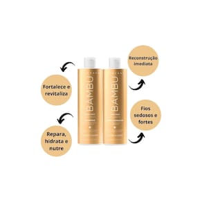 Kit Bambu Hair Care c/ Shampoo 800ML e Condicionador 750ML Jacques Janine O shampoo bambu foi desenvolvido com extrato de bambu e babosa, que fortalecem, revitalizam e trazem de volta o brilho aos seus cabelos. Sua fórmula vegana remove as impurezas de forma precisa e suave deixando os fios sedosos e fortes. O condicionador bambu possui fórmula vegana que repara, hidrata e nutre os cabelos danificados. Com extrato de bambu e babosa, promove a reconstrução imediata da fibra capilar, deixando os fios macios, hidratados e soltos. Jacques janine professionnel - Marca criada pelo grupo BR Cosmetic em parceria com Jacques Janine, atualmente a maior rede de salões de beleza na america latina. Os produtos variam entre shampoos, condicionadores, Másc., tratamentos, finalizadores, etc. São mais de 20 linhas para as mais diversas necessidades. Produtos desenvolvidos com alta performance! Ser linda não tem mais Segredo.
