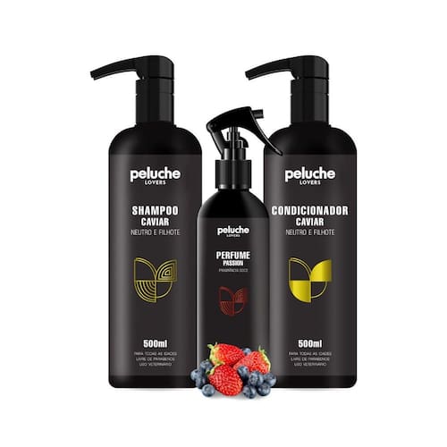 O shampoo e condicionador neutro e filhote à base de caviar da peluche cosméticos pet foi desenvolvido para limpar e neutralizar os odores para todas as idades, mantendo as características naturais dos pelos. Sua fórmula balanceada com toque de caviar proporciona aos pelos maciez e brilho após um banho seguro e eficaz para o pet.