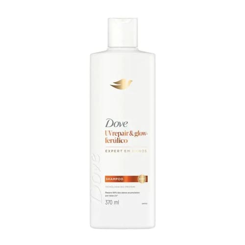 Shampoo dove uv repair & glow + ferúlico 370mlo shampoo dove uv repair & glow + ferúlico foi desenvolvido para reverter os danos causados pelos raios uv e proteger os cabelos contra os efeitos nocivos do sol por até 70 horas. Sua fórmula combina ação antioxidante e a tecnologia uv ferúlico, que transforma cabelos opacos, foscos e sem vida, deixando-os com até 10 vezes mais brilho. Ideal para quem busca proteção prolongada, brilho intenso e fortalecimento dos fios.Benefícios e diferenciais do shampoo dove uv repair & glow + ferúlicoprotege os cabelos dos raios uv por até 70 horas.Reverte danos causados pelo sol.Fortalece os fios.Intensifica o brilho em até 10 vezes.Proporciona ação antioxidante.Tecnologia uv ferúlico para revitalização dos fios.Como usar o shampoo dove uv repair & glow + ferúlicoColoque o shampoo dove uv repair & glow + ferúlico nas mãos.Aplique diretamente nos cabelos molhados.Massageie bem a raiz.Enxágue.Para melhores resultados, use também o condicionador ou a máscara de tratamento da linha dove uv repair & glow + ferúlico duas vezes por semana. Marca: Não Informado