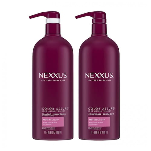 SHAMPOO E CONDICIONADOR PARA CABELOS COLORIDOS O Shampoo e Condicionador Nexxus Color Assure para cabelos tingidos ajuda a hidratar e aumentar a vitalidade dos cabelos coloridos. SHAMPOO E CONDICIONADOR COLOR SAFE este champô para cores proporciona vitalidade de longa duração até 40 lavagens. INGREDIENTES DE QUALIDADE PARA CABELOS TRATADOS COLORIDOS infundido com uma mistura exclusiva ProteinFusion com Proteína de Elastina e Quinoa, este shampoo e condicionador protetores da cor ajudam a realçar a cor. SHAMPOO E CONDICIONADOR FEMININO PARA CABELOS TRATADOS COLORIDOS o condicionador Nexxus Color Assure cria uma camada defensiva invisível para proteger as proteínas essenciais da fibra capilar. SHAMPOO E CONDICIONADOR PROTETOR DE COR COM QUALIDADE DE SALÃO Os produtos capilares Nexxus nasceram nos salões e foram aperfeiçoados pela ciência, usando tecnologia de alto desempenho e ingredientes preciosos Marca: Não Informado