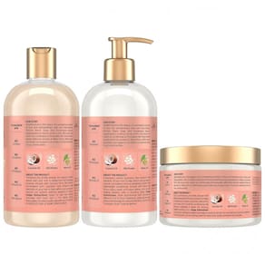 Shampoo: Limpa profundamente, suaviza e hidrata com óleo de coco e proteínas de seda. Condicionador: Restaura a umidade e melhora a manejabilidade, deixando os cabelos macios e sem emaranhados. Curl Enhancing Smoothie: Define os cachos, controla o frizz e proporciona um toque macio. Ingredientes Chave: Óleo de coco e flor de hibisco para hidratação, com óleo de neem e proteínas de seda que fortalecem e protegem os fios. Marca: Não Informado