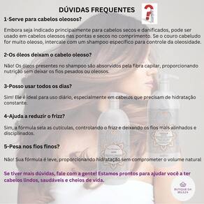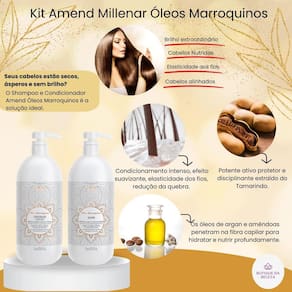 Este kit contém 1 shampoo para hidratação e nutrição amend óleos marroquinos 1000ml 1 condicionador para hidratação e nutrição amend óleos marroquinos 1000ml Somos a butique da beleza Uma empresa especializada no comércio de cosméticos e semijoias. Estamos sempre entre os melhores vendedores. Nosso compromisso é com você Seu conforto e segurança são nossos propósitos Servir e ajudar são nossos deveres Shampoo e condicionador amend óleos marroquinos Se seus cabelos estão ressecados, opacos ou sem vida, a linha amend óleos marroquinos é a solução ideal para restaurar a saúde, o brilho e a maciez dos fios. Com fórmulas enriquecidas com os preciosos óleos de argan e amêndoas, o shampoo e o condicionador proporcionam limpeza suave, nutrição intensa e hidratação duradoura, deixando seus cabelos revitalizados e deslumbrantes desde a primeira aplicação. Indicado para qual tipo de cabelo Perfeito para cabelos secos, danificados, opacos ou com frizz, que necessitam de nutrição, hidratação e controle. Benefícios Nutrição avançada: os óleos marroquinos, ricos em ácidos graxos e vitaminas, nutrem profundamente os fios. Hidratação duradoura: recupera e mantém a umidade natural, evitando o ressecamento. Redução do frizz: sela as cutículas, proporcionando fios alinhados e disciplinados. Reparação de danos: restaura a elasticidade e força dos cabelos fragilizados por químicas ou agressões externas. Brilho intenso: realça o brilho natural, deixando os cabelos radiantes e saudáveis. Desembaraço fácil: facilita o pentear, reduzindo a quebra. Proteção contra danos externos: cria uma barreira contra o calor, poluição e ferramentas térmicas. Resultados Cabelos nutridos, hidratados, livres de frizz e com brilho extraordinário. Os fios ganham textura macia, leveza e aparência saudável. Modo de uso Aplique o shampoo amend óleos marroquinos nos cabelos molhados, massageando suavemente até formar espuma. Enxágue completamente e, se necessário, repita a aplicação. Em seguida, aplique o condicionador amend óleos marroquinos no comprimento e pontas, massageando suavemente. Deixe agir por 1 a 2 minutos e enxágue bem. Dica da butique da beleza Para resultados ainda mais incríveis, utilize a linha completa amend óleos marroquinos, incluindo a máscara de tratamento. Assim, você garante cabelos profundamente nutridos, saudáveis e deslumbrantes Dúvidas frequentes Posso usar todos os dias Sim ambos os produtos são indicados para uso diário, mas a frequência ideal depende das necessidades dos seus fios. Os óleos pesam nos fios finos ou deixam o cabelo oleoso Não a fórmula é leve, sendo absorvida pela fibra capilar sem comprometer o volume ou causar oleosidade. Funciona em cabelos oleosos Embora seja mais indicado para cabelos secos, pode ser em cabelos mistos, aplicando o condicionador apenas no comprimento e pontas. Ajuda a reduzir o frizz Sim a linha sela as cutículas, controlando o frizz e deixando os cabelos alinhados e disciplinados. Se ainda tiver dúvidas, fale conosco estamos prontos para ajudar você a conquistar cabelos lindos, saudáveis e cheios de vida.