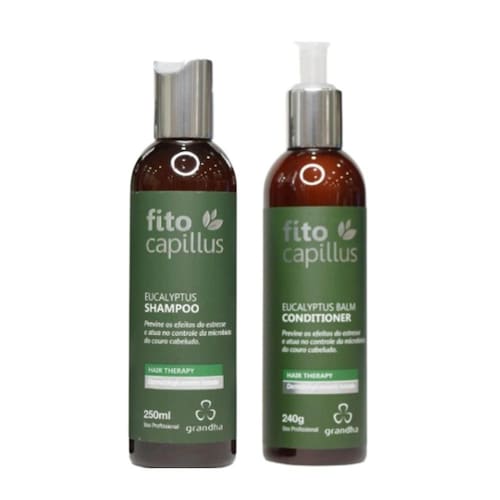 Shampoo e Condicionador Fito Capillus Eucalyptus O kit Fito Capillus Eucalyptus é orientado para combate ao com o máximo conforto na terapia do banho. Sugerido para os banhos noturnos, com a finalidade de melhorar a qualidade do sono e do descanso. Combina um exclusivo componente biotecnológico de atividade seborreguladora com potencial biomodulador do sistema de defesa imunoinflamatório, auxiliado pela associação de três poderosos óleos essenciais com uma matriz . Confere ótimo aspecto à pele e garante o equilíbrio da microbiota, priorizando sua saúde e bem-estar. Kit composto por: Eucalyptus Shampoo 250ml Eucalyptus Balm Conditioner 240g MODO DE USO Aplique o Eucalyptus Shampoo nos cabelos úmidos, massageie-os suavemente e enxágue-os. Repita a operação e deixe o produto interagir com os cabelos por ao menos 3 minutos, massageando o couro cabeludo e toda a extensão da fibra capilar. Se houver necessidade, repita a operação pela terceira vez. Aplique o Eucalyptus Balm Conditioner nos cabelos úmidos logo após o uso do xampu e siga massageando suavemente o couro cabeludo e toda a extensão da fibra capilar. Deixe o produto interagir por ao menos 3 minutos e massageie o couro cabeludo e os cabelos usando os movimentos da reflexologia epicraniana. Enxágue com água morna a fria. Nunca use água muito quente para os serviços de terapias capilares. INFORMAÇÕES IMPORTANTES Não testado em animais. Dermatologicamente testado. Previne os efeitos do e atua no controle da microbiota do couro cabeludo. Com óleos essenciais de cânfora branca, bergamota e eucalipto globulus. obs: Após receber a sua encomenda deixe seu comentário dando sua opinião sobre o produto. Vamos ficar muito contentes em receber a sua avaliação. Marca: Não Informado