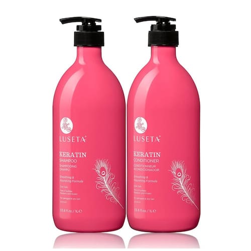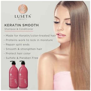 O shampoo e condicionador com infusão de queratina bloqueiam a umidade e reparam os cabelos danificados. A fórmula suavizante e nutritiva mantém os cabelos fortes, brilhantes e saudáveis o shampoo sem sulfatos limpa suavemente os cabelos e deixa os cabelos macios, sedosos e fáceis de gerenciar o condicionador hidrata e protege os cabelos do calor e dos danos ao meio ambiente shampoo e trava de condicionador de qualidade de salão na sua cor e preserve o seu caro serviço de salão Aumente a elasticidade do cabelo para reduzir a quebra do cabelo para cabelos danificados e oleosos e cabelos lisos e ondulados Marca: Não Informado