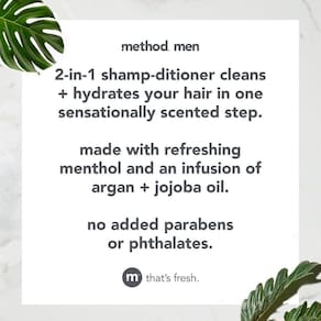 Shampoo e condicionador Method Men 2 em 1, sem cedro e cipreste, sem parabenos e ftalatos, 14 fl oz, 1 ct