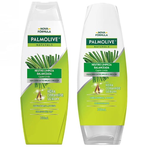 O kit é composto por: 1 Shampoo Palmolive Neutro Limpeza Balanceada Naturals 350ml 1 Condicionador Palmolive Neutro Limpeza Balanceada Naturals 350ml Limpa suavemente e nutre seu cabelo de dentro para fora. sinta-se confiante com cabelos fortes e macios que brilham com vida. capim limão, equilíbrio entre brilho e frescor. cabelo normal a oleoso, sem sal.