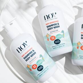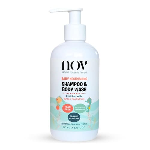 Shampoo e sabonete líquido vegano orgânico natural para bebês NOV | Fórmula vegetal sem lágrimas para limpeza e hidratação suaves, feita sem ingredientes agressivos