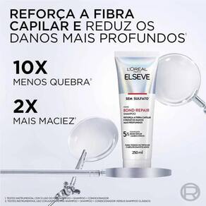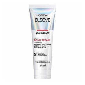 Shampoo Elseve Bond Repair 250ml A linha Bond Repair de L’Oréal Paris contém em sua fórmula o Ácido Cítrico que age na camada mais profunda da fibra , o córtex, e recria as ligações capilares quebradas a nível molecular para cabelos transformados e reparados a sua força . Use o tratamento intensivo antes do shampoo para alcançar a reparação capilar mais profunda a nível molecular e completar a rotina Bond Repair. Como Usar Após o uso do Bond Repair Pré-shampoo Salvador, aplique o produto nos cabelos molhados, massageie suavemente e enxágue. Benefícios: Reforça a fibra capilar e reduz danos mais profundos.