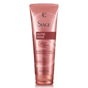 O Shampoo Eudora Siage Nutri Rose 250ml contém uma ação purificante e limpa profundamente da raiz as pontas sem ressecar os fios, além de ser enriquecido pelo poderoso Elixir de Rosas que é um ativo poderoso obtido através da colheita de 30 mil pétalas de rosas que garante a reparação dos fios por inteiro. Em sua fórmula possui a biotecnologia Affinité 4D é uma evolução da antiga tecnologia Affinité 3D. Incluímos uma proteína inteligente na matriz que detecta as áreas danificadas do fio e agora, além de garantir tratamento prolongado mesmo após o enxágue, também trata de forma mais eficaz as áreas danificadas do cabelo.