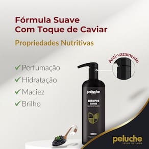 O shampoo neutro e filhote à base de caviar da peluche cosméticos pet foi desenvolvido para limpar e neutralizar os odores para todas as idades, mantendo as características naturais dos pelos. Sua fórmula balanceada com toque de caviar proporciona aos pelos maciez e brilho após um banho seguro e eficaz para o pet.