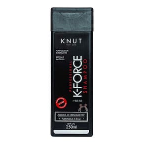 Shampoo Knut K-Force 250ml Shampoo para cabelos com afinamento ou queda. Knut K-Force Shampoo acelera o crescimento dos fios e fortalece a raiz. Knut K-Force Shampoo vai muito além de limpar o cabelo. Tem uma fórmula rica em nutrientes e vitaminas. Eles dão força às fibras e ao bulbo capilar para aumentar a retenção de fios e ajudar no combate à queda de cabelo causada pela falta de vitaminas. Além disso, tonifica o couro cabeludo e estimula o crescimento. Produto livre de parabenos, ftalatos e ingredientes animais. Não testado em animais. Biotina B1 e Pantenol B5: vitaminas que dão força e aumentam a elasticidade dos fios. Seu cabelo fica limpo, mais resistente da raiz às pontas e com o crescimento acelerado. Conselho de Aplicação Aplique o shampoo sobre o cabelo molhado e massageie couro cabeludo, comprimento e pontas gentilmente. Em seguida, enxágue. Marca: Não Informado Ean: 6015193447239