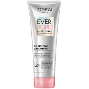 L'Oreal Paris Shampoo sem sulfato brilhante com ácido glicólico, cuidados com o cabelo para brilho duradouro e suavidade para cabelos opacos e secos, EverPure, 17 ml