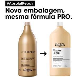 Shampoo para cabelos danificados. L'oréal Professionnel Serie Expert Absolut Repair Gold Quinoa + Protein Instant Resurfacing Shampoo reestrutura a fibra capilar, confere brilho e leveza durante a limpeza diária dos fios. O Shampoo Absolut Repair Gold Quinoa + Protein L'Oréal Professionnel traz ativos que ajudam restaurar a superfície dos fios para que o cabelo revele uma aparência mais saudável. Seu visual ganha muito mais brilho e um toque macio incrível. Ação Gino Quinoa e proteínas: reduz os danos na superfície do cabelo para fios mais brilhantes e com toque leve. Conselho de Aplicação Aplique o shampoo sobre o cabelo molhado e massageie com suavidade. Enxágue e, se necessário, repita o processo. Lembre-se se sempre colocar o shampoo na mão, e esfregá-lo nas suas palmas antes de passar no couro cabeludo. Isso evita com que o produto fique concentrado em apenas uma região do cabeludo. Resultado Seu cabelo fica limpo, até 77% mais reparado, 7x mais brilhante e com toque suave com o uso da linha completa . Marca: Não Informado Ean: 7899671100101