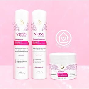 Desenvolvida para o tratamento pos-quimica, com a função de prolongar o efeito de cabelos quimicamente alisados, a linha Resgate Pós Progressiva Vloss promove uma limpeza suave e delicada, deixando os cabelos limpos, saudáveis e disciplinados. Sua formula possui Oleo de Argan e tecnologia Liss Pro Technology Blend de aminoácidos de queratina que juntos promovem a reconstrução interna da fibra capilar, devolvendo peso molecular, diminuindo frizz e prolongando o efeito liso perfeito por mais tempo. Ativos: Óleo de Argan, Nano Keratin