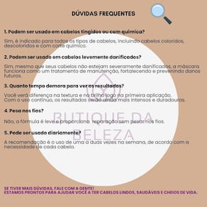Este kit contém 1- shampoo loreal absolut repair molecular 1500ml 1- máscara loreal absolut repair molecular 500g 1- pré shampoo loreal absolut repair molecular 190ml Somos a butique da beleza Uma empresa especializada no comércio de cosméticos e semijoias. Estamos sempre entre os melhores vendedores. Nosso compromisso é com você Seu conforto e segurança são nossos propósitos Servir e ajudar são nossos deveres Kit completo shampoo, máscara e pré-shampoo loréal absolut repair molecular: reparação em 3 passos Se seus cabelos estão frágeis, quebradiços ou sem vida, o kit completo l'oréal absolut repair molecular é a solução definitiva Combinando pré-shampoo, shampoo e máscara de tratamento, este kit revoluciona a saúde dos fios com tecnologia molecular avançada. Repare danos profundos, recupere o brilho e proteja seus cabelos como nunca antes. Indicado para qual tipo de cabelo Cabelos severamente danificados por químicas alisamentos, tinturas, descolorações . Fios quebradiços, porosos ou com pontas duplas. Cabelos que perderam elasticidade, brilho e maciez. Quem busca um tratamento 360 antes, durante e após a lavagem . Funciona em todas as texturas, desde cabelos finos até grossos, e é seguro para cabelos coloridos Benefícios Pré-shampoo reparador: prepara os fios para a lavagem, reduzindo a quebra durante o banho e potencializando a ação do shampoo e máscara. Shampoo de limpeza profunda: remove impurezas sem agredir, enquanto a tecnologia Repair molecular Inicia a reconstrução dos fios. Máscara de tratamento intenso: penetra na fibra capilar, repondo proteínas e lipídeos para uma reparação De dentro para fora. Efeito cumulativo: quanto mais você usa, mais seus cabelos ganham força, brilho e resistência a danos futuros. Resultados 1 semana: menos quebra ao pentear, fios mais fáceis de desembaraçar e brilho renovado. 2 semana: pontas seladas, cabelos macios como seda e toque leve. Uso contínuo: estrutura capilar fortalecida, danos invisíveis e aspecto de cabelo saudável por até 3 meses. Modo de uso passo a passo 1. Pré-shampoo absolut repair molecular: aplique em cabelos secos, das pontas à metade dos fios. Deixe agir por 5 minutos e enxágue. 2. Shampoo absolut repair molecular: use uma pequena quantidade em cabelos molhados, massageando suavemente. Enxágue bem. 3. Máscara absolut repair molecular: após o shampoo, aplique generosamente, focando nas áreas mais danificadas. Deixe agir por 5-7 minutos e enxágue. Dica da butique da beleza: use o kit 2 vezes por semana para resultados otimizados. Dúvidas frequentes 1. Qual a diferença entre este kit e o shampoo + condicionador Este kit inclui o pré-shampoo, que prepara os fios para a reparação, e a máscara intensa, com 3x mais nutrição que o condicionador. Ideal para reparação danos extremos 2. Posso usar a máscara no couro cabeludo Recomendamos aplicar apenas do comprimento às pontas para evitar oleosidade. 3. Funciona em cabelos cacheados Sim a máscara define os cachos e reduz o frizz, enquanto o pré-shampoo protege a curvatura durante a lavagem. Não deixe seus cabelos na mão da sorte Enquanto você hesita, seus fios continuam quebradiços e sem vida. O kit completo l'oréal absolut repair molecular é a solução para transformar cabelos danificados em sedosos e brilhantes.