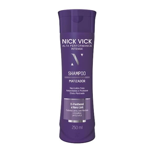 O Shampoo Matizador Intense Nick Vick traz a inovação tecnológica para a neutralização de tons amarelados nos cabelos loiros e mechados, causados pela oxidação excessiva por ação do sol, da piscina e da poluição do ar.