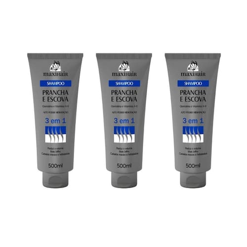 Shampoo Maxihair 500Ml Prancha E Escova 3 Em 1 - Kit Com 3Un