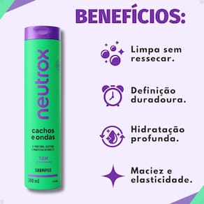 Ocasiões de Uso/Cenários Ideais O Shampoo Neutrox Cachos e Ondas 300ml é o aliado perfeito para o dia a dia, seja para manter a definição dos cachos em um compromisso importante, para um encontro casual ou para simplesmente realçar a beleza natural dos seus cabelos em casa. Ideal para todas as ocasiões em que você deseja exibir cachos e ondas impecáveis e cheios de vida.