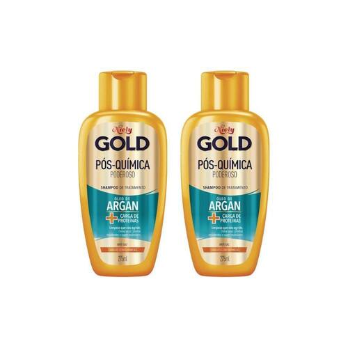 Descrição O shampoo niely gold de 275ml com argan pos química é especialmente formulado para cabelos que passaram por processos químicos, como coloração, alisamento ou permanente. Este shampoo é enriquecido com óleo de argan, um ingrediente conhecido por suas propriedades hidratantes e nutritivas. A sua fórmula suave e sem sal ajuda a limpar suavemente o cabelo, removendo impurezas e resíduos, ao mesmo tempo que ajuda a manter a hidratação essencial para os cabelos quimicamente tratados. O óleo de argan presente no shampoo proporciona um cuidado adicional, deixando os cabelos mais suaves, brilhantes e fáceis de pentear. Além disso, o shampoo niely gold argan pos quimica ajuda a proteger a cor dos cabelos tingidos, prolongando a sua intensidade e vivacidade. Seu uso regular ajuda a restaurar a saúde e a vitalidade dos cabelos, deixando-os com uma sensação de suavidade e sedosidade. Modo de usar Passo 1: molhe completamente o seu cabelo. Passo 2: aplique uma quantidade suficiente de shampoo niely gold nas palmas das mãos. Passo 3: massageie suavemente o shampoo nos cabelos molhados, concentrando-se no couro cabeludo e nas raízes. Certifique-se de espalhar bem o produto. Passo 4: continue a massagem por alguns minutos, estimulando o couro cabeludo e garantindo que o shampoo esteja em contato com todas as áreas do cabelo. Passo 5: enxágue completamente o cabelo com água morna. Certifique-se de que todo o shampoo tenha sido removido. Passo 6: se necessário, repita o processo para uma limpeza mais profunda. Na compra deste kit será enviado 02 unidades do shampoo niely gold de 275ml cada