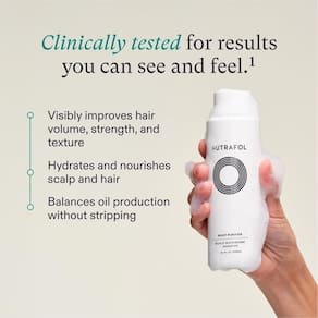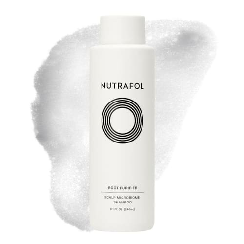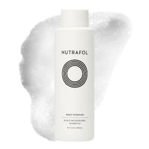 LIMPEZA DIÁRIA: um (1) frasco de 8,1 fl oz de shampoo purificador de raiz Nutrafol é formulado por médicos para hidratar o cabelo e o couro cabeludo enquanto melhora o volume e a força (1)