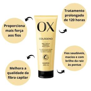 O Shampoo Ox Colágeno 240ml foi desenvolvido para fortalecer e revitalizar os cabelos, proporcionando uma limpeza suave e eficaz. Enriquecido com colágeno, conhecido por suas propriedades de fortalecimento e hidratação, este shampoo ajuda a restaurar a elasticidade dos fios, deixando-os mais resistentes à quebra e com um aspecto saudável. Ideal para cabelos que necessitam de cuidados especiais para manter a vitalidade e o brilho natural.Modo de UsoAplique o Shampoo Ox Colágeno nos cabelos molhados, massageando suavemente o couro cabeludo e os fios até formar espuma. Deixe agir por alguns minutos para que o colágeno possa penetrar na fibra capilar. Enxágue bem. Use regularmente para melhores resultados e complemente o cuidado com o condicionador da mesma linha.