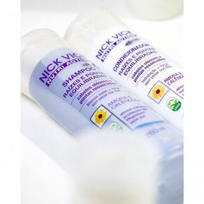 A Linha Raízes e Pontas Equilibradas Nick Vick foi desenvolvida para proporcionar equilíbrio da raiz às pontas do cabelo.
