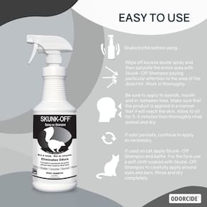 - Fácil de usar: para uso em animais de estimação, sature toda a área com o spray Skunk Off Shampoo, prestando atenção especial à área de impacto direto. Enxágue bem o animal e seque-o. Incrível removedor de odores de gambá para cães e animais de estimação.