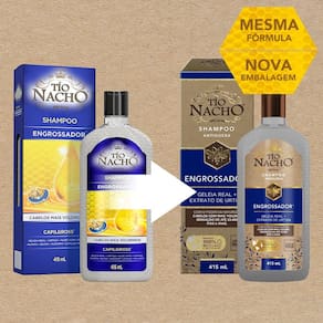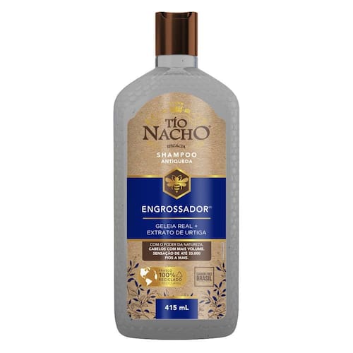 Tio Nacho Shampoo ENGROSSADOR VOLUME Capilar Aumenta A Espessura Do Fio 415ml Tio Nacho Engrossador é um sistema de cuidado para o cabelo fino ou que foi afinando pelo tempo ou processos químicos, que