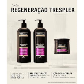 Benefícios: - Proteção eficaz contra danos de processos químicos e aparelhos térmicos; - Fios 100 vezes mais fortes; - Restauração intra-capilar; - Regeneração TRESPLEX, que recupera a elasticidade e suavidade dos cabelos.