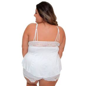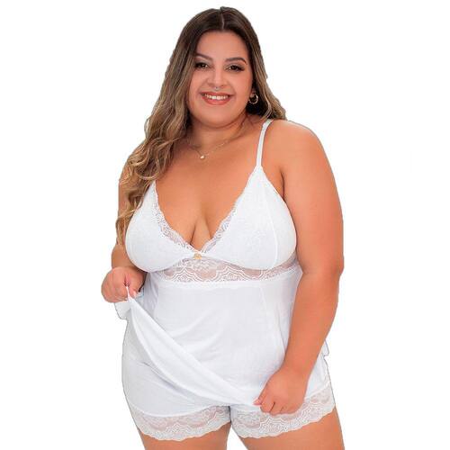 Short Doll Baby Doll Pijama Confortável Renda Luxo Plus Size Amanda Branco - Branco - 50