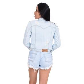 Short jeans amassado com barra desfiada