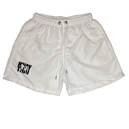 Short Masculino Tactel Estampado Cordão Ajustável Muay Thay - Branco - G