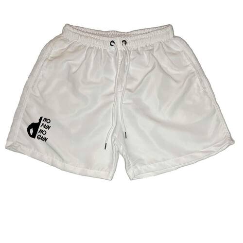 Short Masculino Tactel Estampado No Pain No Gain Cordão - Branco - GG