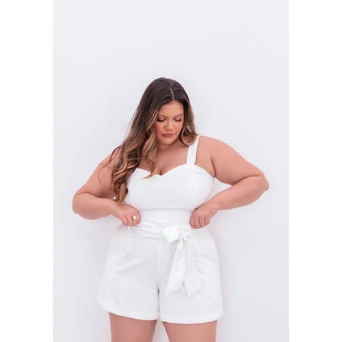 SHORT PLUS SIZE ALFAIATARIA. Apresentamos o short plus size perfeito para adicionar um toque de sofisticação e estilo aos seus looks. Confeccionado em um tecido de alta qualidade de alfaiataria, este modelo é composto por poliéster com fibras leves e elastano, proporcionando conforto e flexibilidade durante o uso. Seu design moderno e elegante destaca-se por um corte alinhado que realça as curvas femininas de forma harmoniosa. O short possui cós elástico, passantes e fechamento frontal com botão, garantindo um ajuste perfeito. Além disso, conta com um prático zíper e acompanha um belo cinto em faixa, adicionando um toque de estilo extra ao visual. Disponível nas cores clássicas preto e off white, este short é versátil e pode ser combinado com uma variedade de blusas, camisas e tops, tornando-se uma peça-chave em seu guarda-roupa. Esteja você criando um look casual ou mais elegante, este short plus size é a escolha certa para estar sempre na moda e se sentir confiante em qualquer ocasião.