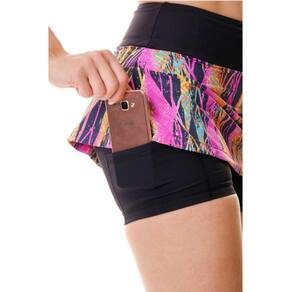 Saia 90% poliamida, 10% elastano; Short 77% poliamida, 23% elastano