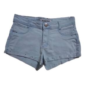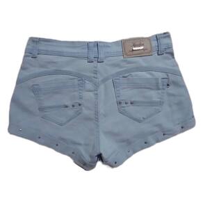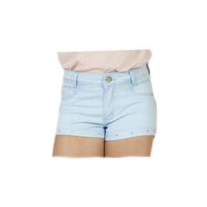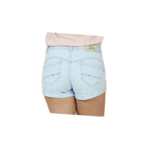 Short feminino com elastano, 2 bolsos traseiros, barra dobrada com aplicação de spikes metálicos. Cintura média / alta. Fechamento /abertura por 1 botão e zíper frontal. Botão em metal com acabamento prateado e pedraria. Peça muito confortável e linda. Composição: 67% algodão, 30% poliéster, 3% elastano. **As medidas descritas no Guia de Tamanhos são as medidas do short.** Compare estas medidas com algum short que você tenha e goste do caimento. Caso comparar com as medidas do seu corpo, escolha uma opção de tamanho que seja um pouco maior que as suas medidas, para que o short não fique apertado. Medidas da Peça: Tam 40 LARGURA DO CÓS: 80 CM ALTURA DO GANCHO: 24 CM QUADRIL: 103 CM COMPRIMENTO DA PERNA DA BERMUDA: 5 CM LARGURA DA BARRA DA BERMUDA: 61 CM COMPRIMENTO TOTAL DA BERMUDA: 29 CM