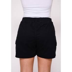 Com elástico na cintura, contém cordão frontal somente para enfeite, 2 bolsos frontais modelo concha, 2 bolsos laterais cargo.