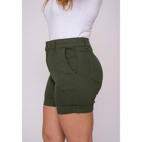 Shorts, cintura média, bolsos laterais e traseiros.