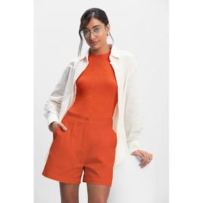 Shorts Feminino Em Sarja Comfort Essendi Laranja Claro - Laranja - 46
