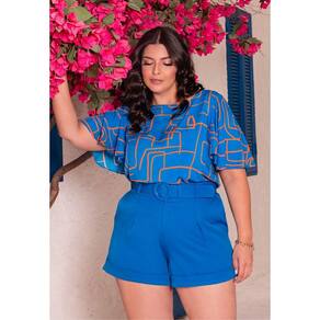 Shorts Feminino Plus Size Alfaiataria Com Cinto Forrado - Azul Petróleo - 46