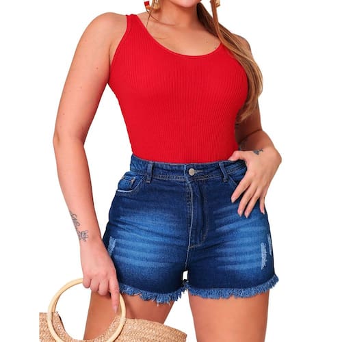 Shorts Jeans Feminino Rasgadinho com Barra Desfiada e Cintura Alta SOBRE O PRODUTO Os shorts jeans detonados (rasgados) femininos são uma tendência da moda que vêm ganhando muita força. Essas peças são ideais para quem gosta de um visual mais despojado e descontraído, cheio de estilo. Eles são perfeitos para os dias quentes de verão e podem ser combinados com diversos tipos de blusas e calçados. Garanta já o seu e dê uma diversificada no seu guarda roupa!