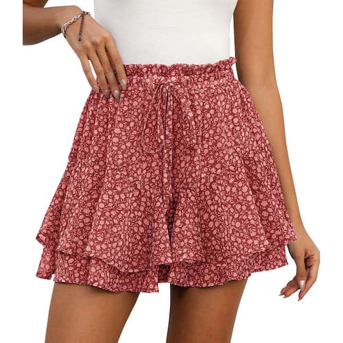 - Os shorts femininos são de tecido de chiffon leve e respirável, perfeitos para climas quentes, oferecendo uma experiência de uso leve e confortável. Você pode usá-los com uma blusa, blusa ou regata simples para uma aparência chique e fácil